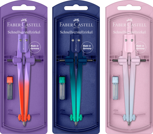 Якість та функціональність у поєднанні з витонченим дизайном – ось девіз компанії Faber-Castell. Навіть щодо циркулів лідер ринку йде в ногу з останніми віяннями. Однак, не дотримуючись модних дизайнів, Faber-Castell все ж пропонує надійну технологію: міцні зубчасті колеса, тверді центральні осі коліс, ніжки, що легко налаштовуються, разом з не ковзними голками і затискачами грифеля для нанесення чітких ліній є стандартними характеристиками циркулів Faber-Castell.
